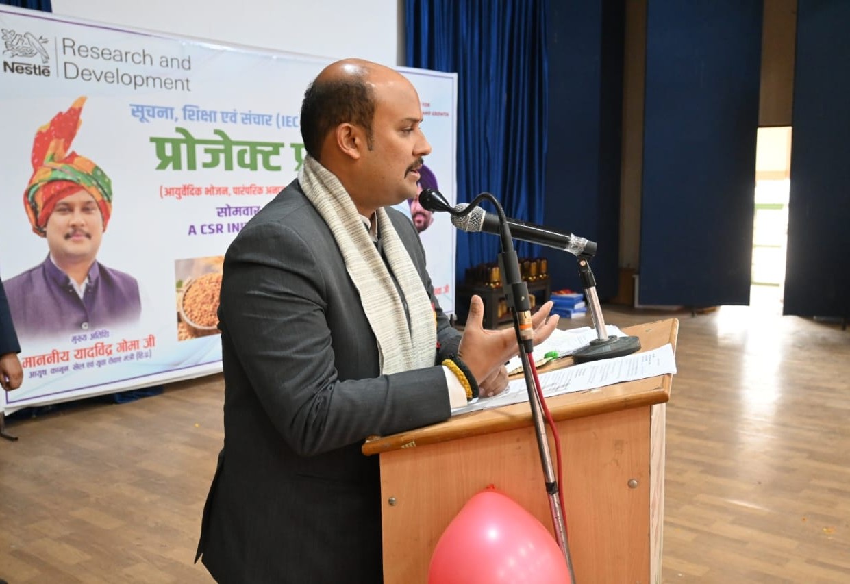 The IEC materials include pamphlets on traditional grains such as ragi, jowar, bajra, and kangni, posters on “Smart Thali – Sehat Wali” promoting balanced diets, flipbooks, adolescent activity booklets, and recipe cards based on traditional grains. Developed with a community-centric approach, these materials aim to strengthen awareness around AYUSH Aahar, nutrition, and preventive healthcare, especially among youth and adolescents.