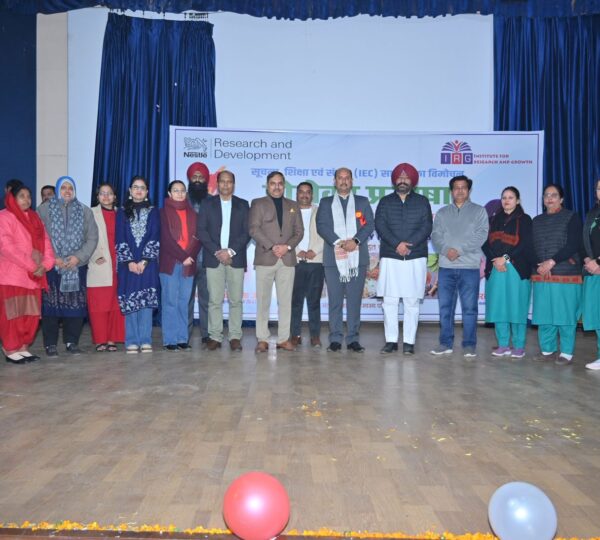 On 12 January 2026, Institute for Research and Growth (iRG) organized the formal launch of IEC (Information, Education & Communication) materials developed under Project PRATYUSHA, with support from Nestlé R&D, at Government College, Nalagarh, Himachal Pradesh.